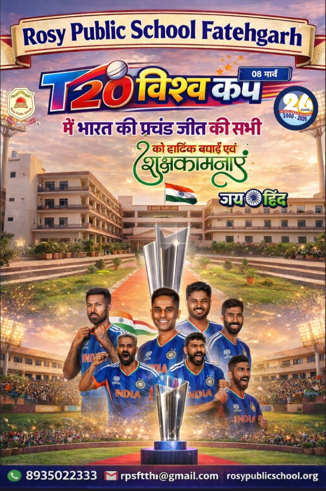 - Description :Students celebrating the glorious victory of India in the ICC Men's T20 World Cup